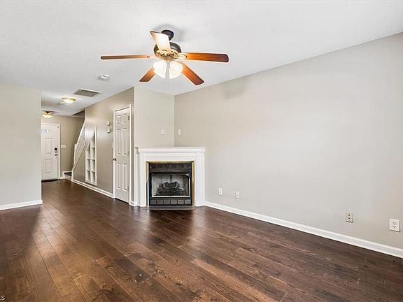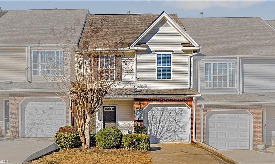 Enjoy the benefits of home ownership with this move-in ready opportunity in McAlister Place. Conveniently situated in Northwest Greensboro just minutes from multiple New Garden area shopping centers. Two-level townhome with 1-car garage. Tidy hard-surface flooring throughout. Both upstairs bedrooms feature private en suite bathrooms and walk-in closets. Laundry is also neatly and conveniently tucked upstairs. Open flow on main between Living, Kitchen and Breakfast areas. Fireplace with gas logs in living room with half-bath on main level tucked privately to the side. Concrete patio in rear yard. Mature, dense landscaping for privacy along back of property. Sidewalk community with neighborhood pool at entrance off Fleming Road. New Roof (HOA) in 2024. Claxton/Kernodle/Western Guilford schools. *BACK ON MARKET 2/12 AT NO FAULT OF SELLER
