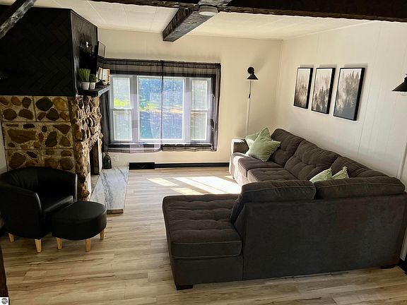 Must see turn key property! Whether you’re looking for your next home, home away from home, or income property this place is it. Currently used as the owner’s family vacation home, and a short term vacation rental with 2yr of history as a 5 Star income property with repeat clients. This 3 bed 1 bath home is nestled along the Muskegon River is in private neighborhood with a healthy mixture of permanent and vacation homes. This property features an Artesian well, 2 barns, 24x40 cement floor pole barn with workshop in the back, and a relaxing patio next to the pond. The 1300+ sq ft home has been completely remodeled with new roof, siding, flooring, kitchen, windows and HVAC. It features washer and dryer, stainless steel appliances, and a four seasons porch that comes with a 180° view of the Muskegon River. It’s the perfect place for family gatherings or just to get away and relax. Adjacent property cannot be built upon so you’ll have unobstructed views while you sit on the newly built dock and watch the wildlife across the Muskegon River. Schedule your private appointment today, because this property won’t last long.