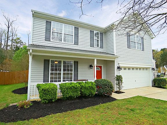 Welcome home! Ready to move in. New luxury vinyl plank flooring throughout the downstairs. New quartz counter tops in kitchen. Great open floor plan. 9 foot ceilings downstairs. Large master bedroom with two walk in closets. Master bath with dual vanities, separate garden tub and shower. All bedrooms are good size with walk in closets. Large fenced back yard. This home backs to the woods, very private. Located just minutes from RDU Airport Brier Creek, and Major Highways (70, 40 and 540)