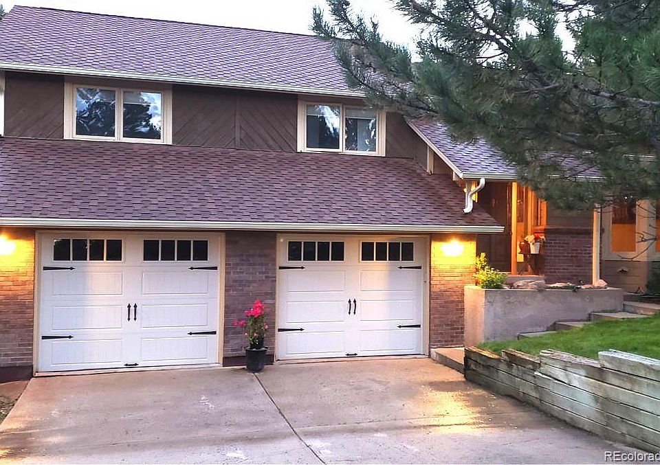 Beautiful and bright, this tri-level home is situated on a tranquil lot, backing up to 35 acres of open space and wooded trails. Wake up each morning to awe-inspiring sunrises in the East and drift off to sleep each night with the peaceful sounds of nature from the master suite. The suite has a sliding door to the spacious deck and is very private with no other homes in sight. The large formal dining room leads to the back deck and is perfect for entertaining while enjoying serenity and abundant wildlife. The kitchen includes an island, stainless steel appliances and granite countertops. It also features a convenient eat-in with a bay window. The main level living room has a fireplace, large windows and skylight. The garden level is a walk-out and the downstairs bedroom is perfect for guests, or to enjoy as your private and light-filled office. The laundry room and large family room downstairs have built-in shelving for storage. Also downstairs is a partially unfinished basement. The home features a fenced backyard with gates, steel children's playground set, a 2017 roof, sprinkler system, and a 2.5 car garage that has room for a workspace. Other updates include energy efficient skylights, landscaping, a water purification system, and the home is wired with CAT 6 cable. This home is conveniently located blocks from Ponderosa High School, Bayou Gulch Regional Dog Park, and Bingham Lake. The Pinery offers the best of Colorado living; pines, wildlife, a neighborhood lake, covered picnic area and a children's park. It is also a golf course and country club community. Stainless steel appliances and window coverings included.