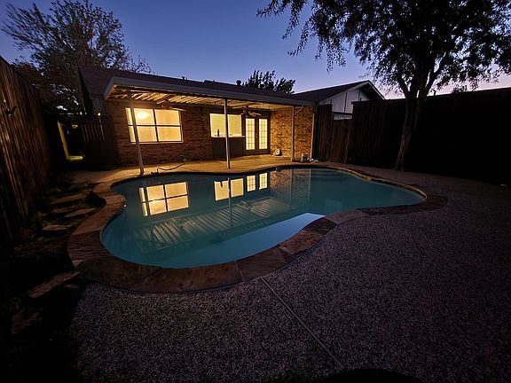 4 Bedroom Home with a POOL! Pool recently replastered, retiled and recoped with stone. Spacious 4 bedroom home has a large living room with vaulted ceilings & a wet bar. Bar leads to Guest Bedroom & a cute side patio. The bedrooms are a good size with a huge master bedroom that boasts his and hers walk in closets. The kitchen & breakfast area are bright & open with great view of the back patio & pool. The 24x10 covered back patio keeps you cool in the shade. If that's not enough, jump in the pool! Rear 2 car garage & 3 car wide driveway. A block from the water park. No Section 8 nor Housing Vouchers. Pets ok. Ready for move in Nov 1. stock photos, currently occupied.