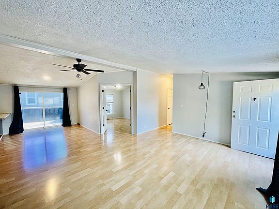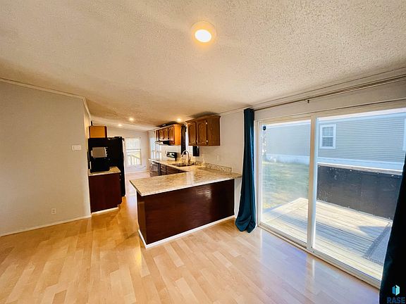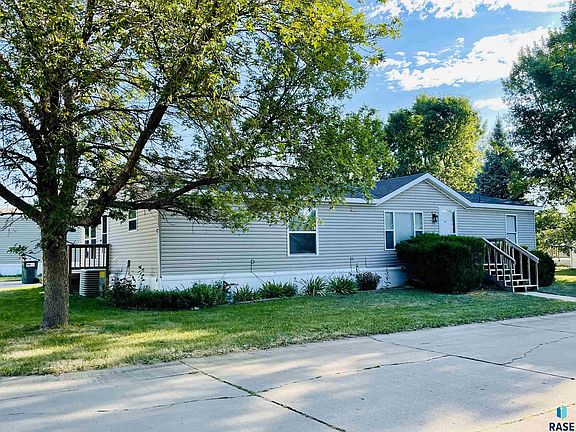 Check out this charming, manufactured home located on a beautiful corner lot in Country View MHC in Sioux Falls. This Doublewide 1996 Four Seasons-27 X 56 is a rare find with 4 bedrooms, 2 full bathrooms and 1,512 sqft priced at $53/sqft. The front door opens to a wide, open floor plan and vaulted ceilings. The main bedroom and bathroom are separate from the other bedrooms. The main bathroom has a large bathtub and stand-up shower with a double vanity. One bedroom has French doors. Two bedrooms have floating shelves. The floor plan has both a dining room and small kitchen dining area. The property is dressed nicely with mature trees, landscaping, and plants. Sliding glass doors open to a large deck with room for a grill and just sit and enjoy.
