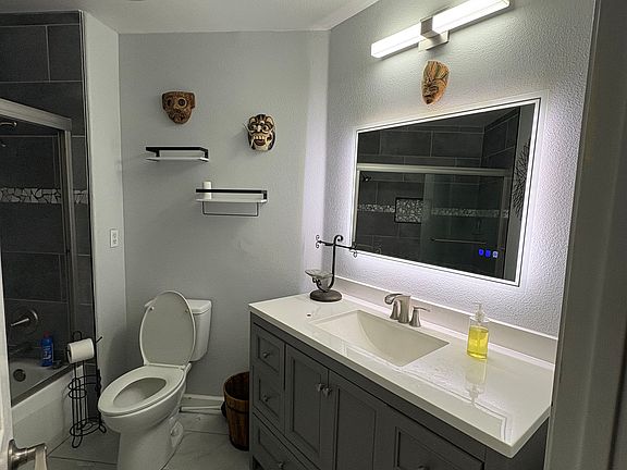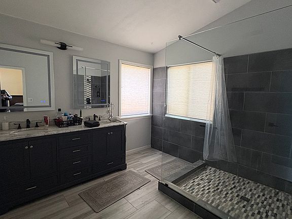 Beautiful home with many upgrades! Both bathrooms are upgraded with LED mirrors/paint and flooring. Bathrooms also have Bluetooth vents with night lights and speakers. In addition, a walk in shower in the master bedroom. Kitchen lights have been replaced with can lighting. Smart thermostat so that you can control the AC\hearing unit from anywhere. Nice mid size backyard with a fire pit. Solar panels included. Close to newer shopping center (Market place at El Paso). Great school district. Shed located on the side for extra storage. Come see for yourself.