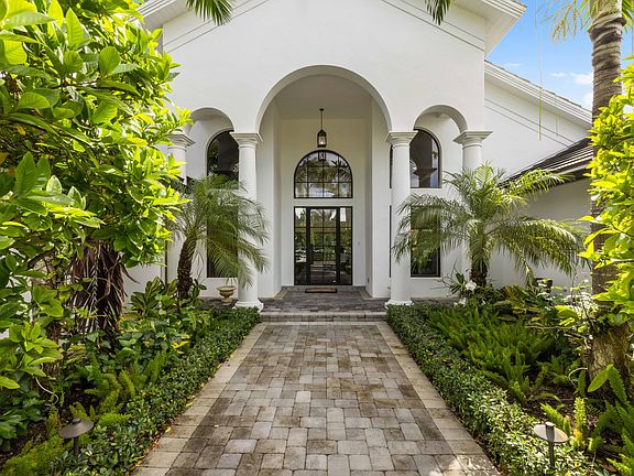 Experience refined Florida living in this fully renovated 1.03 acre single story custom home, totally rebuilt from the inside out. With over 5,000 sq. ft. of living space, this residence offers 4 private bedroom suites, 6 baths, a library-style office with custom built-ins and an upper reading nook, a bonus/game room, and a 4-car split garage.Perfectly positioned on the corner of the cul-de-sac, the home is surrounded by lush, fully reimagined landscaping that enhances both curb appeal and privacy. The property now features an expansive new decorative circular driveway, designed to allow generous parking and smooth flow for residents and guests. Nearly every major component has been replaced and updated, including the roof, impact windows, electrical, plumbing, 3 AC units, irrigation system, garage flooring, new driveway, and all interior flooring.