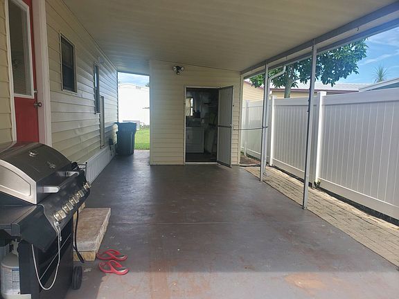 Wow!!! you do not want to miss this beautiful home sitting on a quiet cul-de-sac in all its glory. This home has an amazing floor plan with a Florida room enclosed with new blinds on the double doors that add an extra touch, It offers a refrigerator, range, washer, and dryer, and has an electric water heater and central air throughout. The floors are ceramic tile throughout the home and the walls and ceilings are drywall. There is a pantry and 3 ceiling fans. The carport is large and there is an attached storage shed. The Lot rent is 935.73 and includes water, trash, lawn care, sewer, and cable. Located in a 55-year-old community, this great park offers a clubhouse, community pool, game room, library, billiards, and shuffleboard. It is pet friendly and has a good-sized dog park. This home is close to restaurants, a shopping plaza, and medical buildings, not to forget our beautiful Florida beaches. So do not miss this opportunity of owning your dream home, you will love it. All listing information is deemed reliable but not guaranteed and should be independently verified through personal inspection by appropriate professionals. Integrity Mobile Home Sales cannot guarantee or warrant the accuracy of this information, measurements, or condition of any property. Measurements are approximate. Lot rent is subject to change.