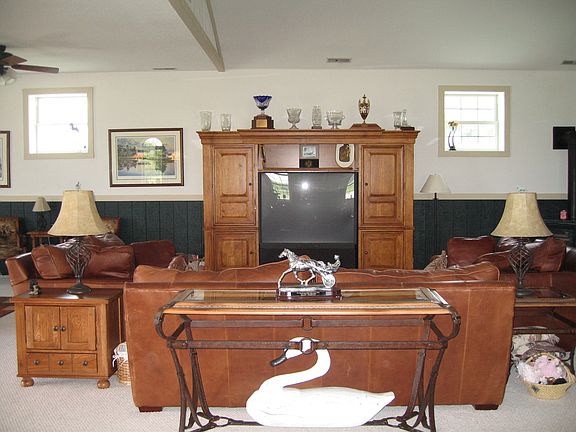 One of a kind custom built estate. Open floor plan with lots of possibilities. Views out every window, deck on either side offer the ability to see the entire property. 3 zone heat (even 5 car garage is heated and carpeted). Property is enclosed by 3 board fence, 7 paddocks, 2 KOI stocked ponds. Sit on the covered deck and enjooy feeding the fish, geese and swans or have the fountain on and listen to the water hitting the pond. The fountain also has ligts and bulds can be changed for color. Large riding arena, so ride at anytime or weather. Sandy footing, ceiling fans, 2 sources of lighting, so it can be very bright at anytime. Large implement shed for trailer storage. If you are looking for a private property not far from town, drive down this winding 16ft wide black top driveway lined with trees and lights. Close the electric gate and enjoy your own santuary. Property has possible subdivision or will qualify for farm land preservation.