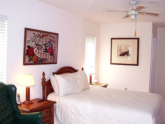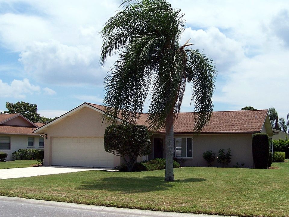 Fine Florida living in this 55+ community with large pool, professional-grade tennis courts, shuffleboard, underground utilities and maintenance-free yard. Near health care, parks, shopping, beaches, islands, churches and transportation. Single-family home is concrete construction, newer roof and windows, ceramic-tiled kitchen and Florida Room, gutters and downspouts, central air conditioning and heat. Bonus room off kitchen for conversation, games or relaxation. Lots of storage space. Spacious Master Suite with French Doors opening to the glassed-in Florida Room. Great Room with cathedral ceiling. Two-car garage with workshop area and pull-down stair to attic. This home has been inspected by an independent, licensed inspector.