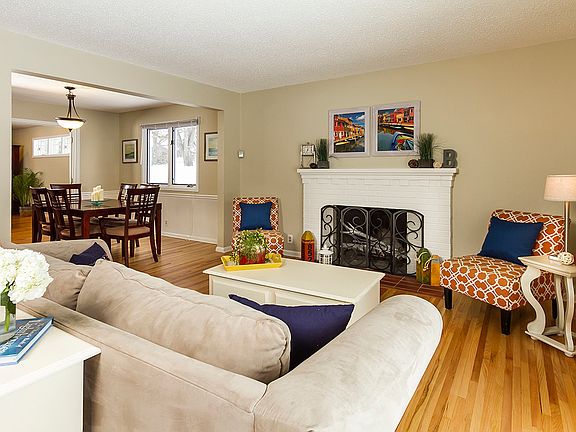 5605 Benton Avenue S, Edina Charming Edina home with bright open floor plan, hardwoods and over .5 acre lot! Light-filled front living room with fireplace and large picture window. Spacious updated kitchen flows into the family room with lots of windows and vaulted ceiling. Fantastic updated main bathroom. Finished lower level family room with second fireplace. Wonderful deck overlooking the huge backyard. Just a short walk to Countryside Elementary!