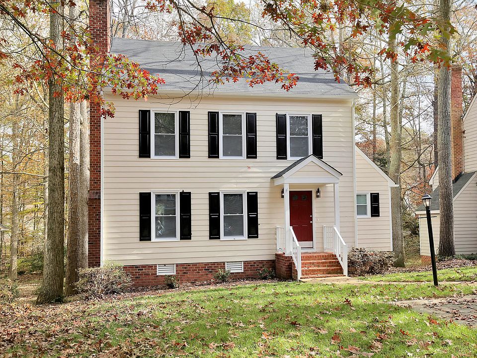 Midlothian (Area 62 ;Woodlake) Located in the highly sought-after Woodlake community, this home features 3 bedrooms, 2.5 baths, 1,648 sq. ft., large rear deck and paved driveway! Updated features include: 2015 - replaced roof, painted exterior, replacement windows and hot water heater. 2016 - replaced HVAC unit and air handler. 2020 - replaced second floor carpet and added LVP to family room and formal room. Spacious family room with new LVP flooring, ceiling fan and wood burning fireplace with painted brick hearth; formal dining room/home office with new LVP flooring and access to kitchen for easy entertaining; updated eat-in kitchen with hardwood flooring, granite counters, under mount sink, tile backsplash, stainless-steel appliances, breakfast bar and pantry. First floor laundry room. Owners suite with walk-in closet and en-suite bathroom. Take a short walk to the end of the street where you'll find access to the Woodlake Swim and Racket Club. The Woodlake community amenities include over 13 miles of trails, 16 playgrounds, 3 outdoor and 1 indoor pool, 19 tennis courts, 3 volleyball courts and a basketball court.