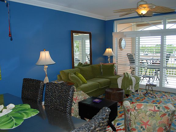 Absolutely gorgeous. This 2/2 waterfront condo has stunning water views, year round sunsets and an outdoor lanai located just feet from the waters edge. Luxuriously furnished with travertine tile throughout. Master has balcony access, dual sinks, whirlpool tub & separate shower. New A/C unit, hurricane shutters elevator and trash chute. Low fee includes bldg wind and flood insurance. Set in a tropical resort-style setting, this spotless single level living residence offers heated waterfront pool, spa, clubhouse and on-site management. A 110' boat slip is also available for an additional 300K (rare sized T-Head sits in deep water with 6' draft). Gated private community offers strong association, deeded garage parking space and large storage area as well as plentiful guest parking.