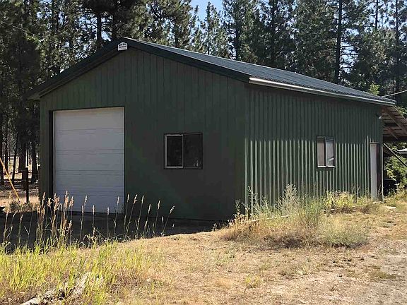 Single-level 1+ bedroom, 1.5 bath home, & potential for 2 more bedrooms - on 10 beautiful acres. Detached insulated shop/garage with loft & 10' insulated door w/opener, outbuildings for your the animals, fruit trees, cellar and loft areas inside, wood and pellet stoves. Between 2 plowed County roads. New heater/AC splits, 3 new high-end windows, remodeled bathroom. Needs some finishing. Beautiful area - only 2 miles from Lake Spokane Campground. Appliances stay. Sold As-is.