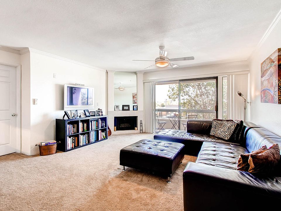 Large condo in gated, resort-like community close to Fashion Valley. Recently remodeled bathrooms and kitchen with wine cooler, fireplace in the living room, and in-unit laundry. Its west facing location offers sunset views and Seaworld fireworks. Assigned parking spot very close to the elevator. The unit also has a guest parking spot. Centrally located,it has very easy access to major freeways.Minutes from Downtown and beaches.Complex features swimming pools,tennis court, bbq areas,and community center.