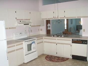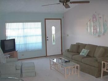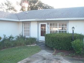 This unit is light and airy with high ceilings. The carpet is newer. Enter through an upgraded beveled glass front door. The kitchen is spacious with lots of cabinet space and opens up to a dining area. This dining area opens to a lanai through sliding glass door. Also, in the kitchen dining area is a utility closet with washer and dryer. The screened lanai has river rock flooring and overlooks a private backyard with natural landscaping. The master bedroom opens with sliders to the lanai, has a large closet and master bath with step in shower. The guest bedroom has a private entry to the guest bath for a suite effect and another door from the hall. This unit is a short golf cart ride to the club house and 18 holes of golf on three beautiful golf courses. A new club house and restaurant is opening in December 2009. This is a great location near Florida Hospital and shopping.