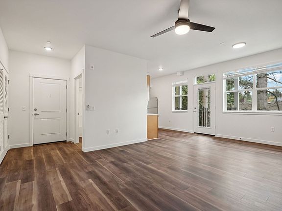 Gorgeous wood-style flooringTall ceilingsLarge windowsTowering treesIn-unit washer and dryerFull-sized stainless-steel appliancesOpen concept