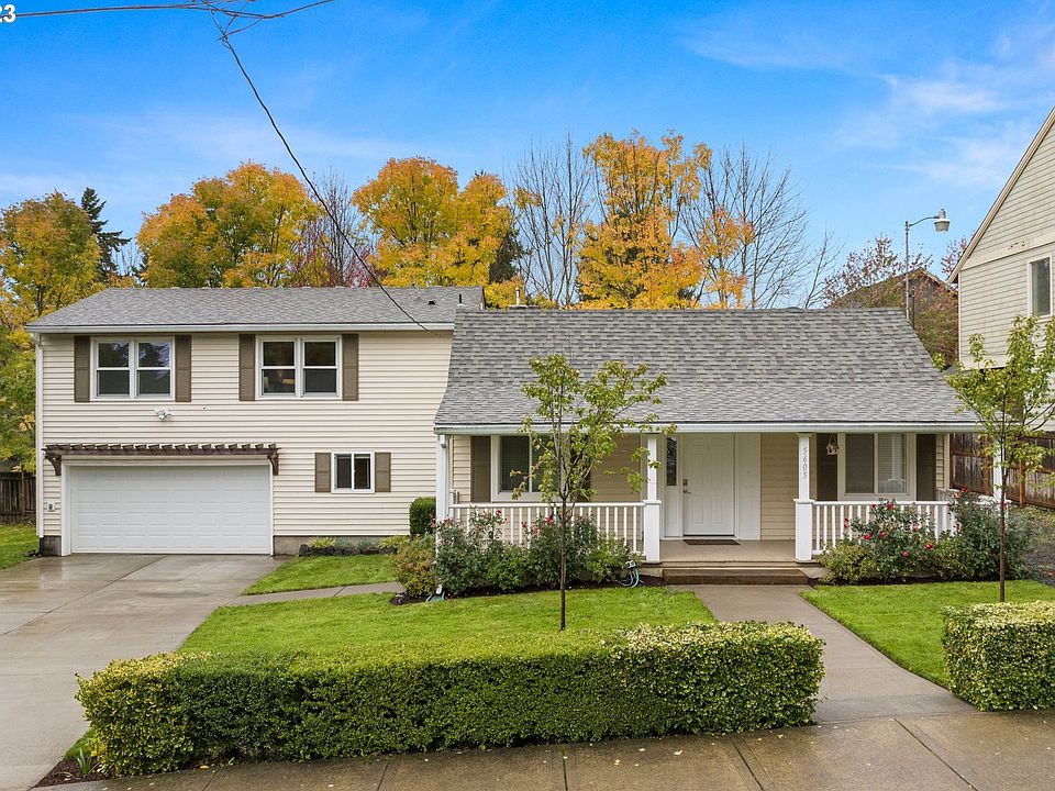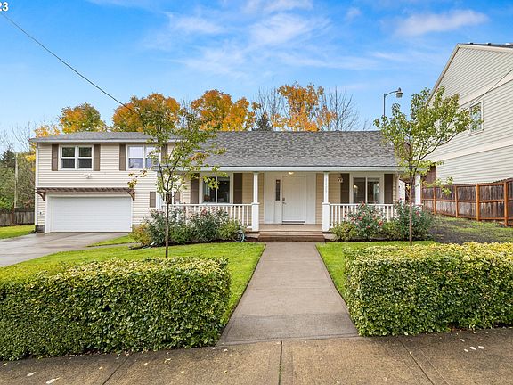 This versatile 3-bedroom, 3-bathroom residence is situated in a quiet and conveniently located neighborhood in West Beaverton. The home's charming character welcomes you from its covered front porch and seamlessly continues throughout the distinct layout, featuring original crown molding, wainscoting, built-ins, and bookshelves. Combining classic allure with modern conveniences, this home boasts a renovated primary suite, a well-appointed kitchen, and updated systems. It's truly move-in ready, featuring significant upgrades like a new roof in 2020, two 125-amp electrical panels installed in 2021, a water heater from 2018, a 90% efficiency furnace installed in 2014, newer plumbing and water lines, as well as updated vinyl windows throughout. On the main level, you'll discover a spacious living room and dining area that leads to a flexible office, den, or guest room. The kitchen has been rejuvenated with granite countertops, stainless steel appliances, an island eat-in area, breakfast bar, and a generous pantry. Upstairs, tucked away, you'll find all three bedrooms and two full bathrooms. With three garage bays and two expansive driveways, this property offers abundant parking and storage options for RVs, boats, trucks, equipment, and more. Close to local schools and parks, as well as a short distance to Nike, downtown Beaverton, and a wide array of stores, shops, restaurants, and food carts.