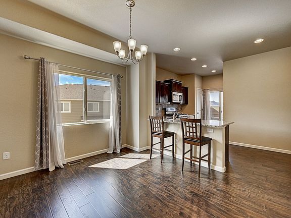 Beautiful end unit townhome. This home has a very open and modern feel. 1472 SF. 2 bedrooms, 3 baths, 1 car garage (oversized), and additional covered parking spot under the private composite deck. Home has AC. New build in 2017, the unit has hand scrapped wood floors, nice paint, granite kitchen counters including a large island and 2 barstools, high end stainless steel appliances including gas stove, also includes a new front loading washer and dryer. Spacious master has a walk-in closet, large attached bath with dual vanity, and overlooks a large courtyard. Second bedroom has beautiful views of the entire mountain range. Very cozy feel to this complex. Well maintained and in a great area. Close and convenient to the Powers corridor, I-25, Peterson AFB, the AFA, both north hospitals and a ton of shopping, entertainment and nightlife. No smoking, no marijuana. Broadmoor Bluffs Realty requires each tenant to have a credit score (Vantage 3.0) of 640 or greater and combined monthly net income of 2 times the rent. Complete tenant qualification requirements are available at the broadmoorbluffsrealty website under Tenants. Prospective tenants have the right to provide a portable tenant screening report (PTSR), as defined in Section 38-12-902(2.5), Colorado Revised Statutes; and if the prospective tenant provides a PTSR, we are prohibited from charging the prospective tenant a rental application fee or a fee to access or use the PTSR. If you intend to provide a PTSR, you must make it available to us, along with a statement that there has been no material change in the information, prior to filling out our application. Your PTSR must have been completed within the last 30 days and must be made available to us by the consumer reporting agency or a third-party website that is in the business of providing consumer reports and complies with all state and federal laws.(C.R.S 38-12-904(1.5)(b)(II)) Broadmoor Bluffs Realty will screen all prospective tenants regardless of PTSR to ensure they meet our tenant screening qualifications.