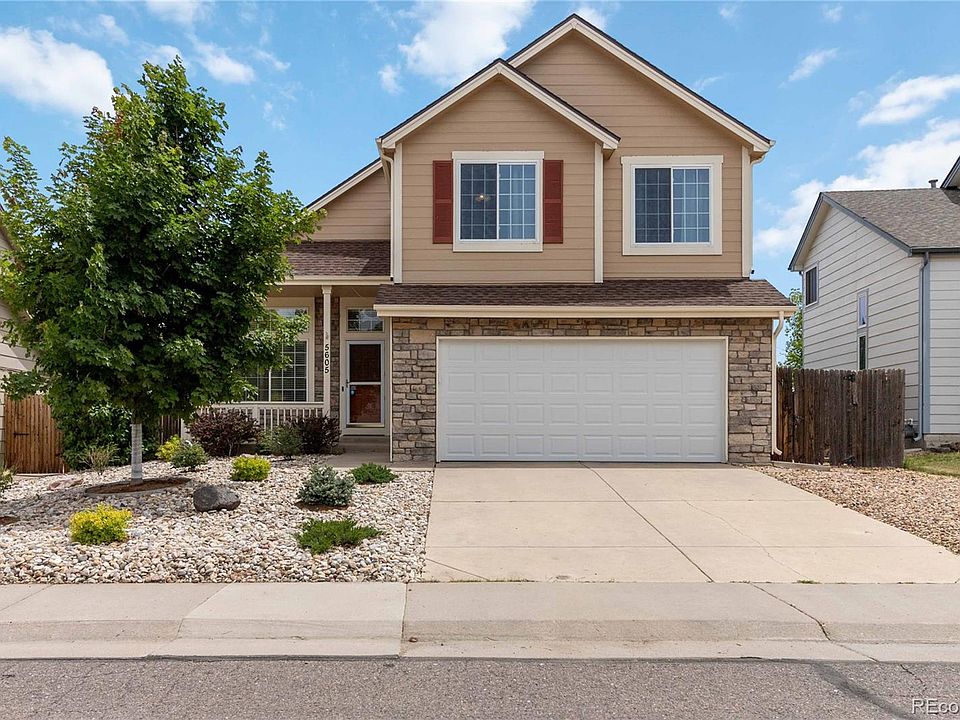 Marvelous two story open floor plan home located in Founders Village. Inviting great room with clear story ceilings and plenty of natural light. Large Kitchen with expansive kitchen island and plenty of cabinetry and solid hardwood flooring. The finished basement contains egress window and a large closet, perfect for a 4th bedroom or additional living space. Newly Xeriscaped front yard is low maintenance and conserves water. New Roof scheduled to be installed in October! Fantastic neighborhood minutes to Historic Downtown Castle Rock and a short commute to the Denver Tech Center, Castle-wood Canyon State Park, pools, biking, hiking trails, restaurants and schools.