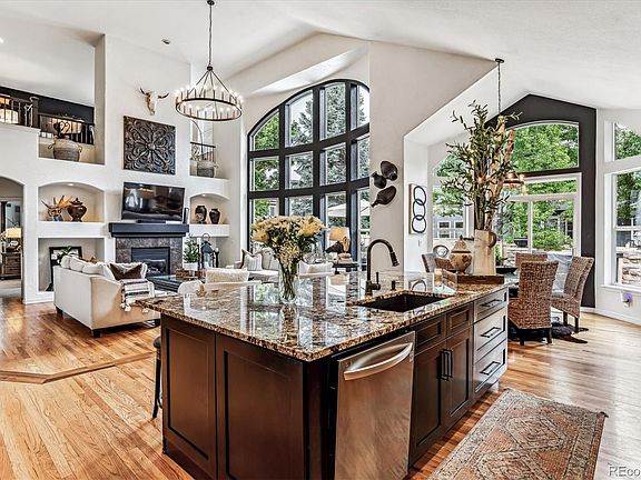 Price Improved on this stunning luxury home, masterfully reimagined by its original owner to exemplify sophistication and elegance. This residence is a true showpiece, offering impeccable design and luxurious details throughout. The main level welcomes you with an elegant dining room and grand foyer featuring custom wrought iron stair railings. The two-story family room, featuring a fireplace and an expansive wall of windows, is bathed in natural light. The chef’s kitchen is a gourmet delight, complete with double ovens, cooktop, kitchen island, stainless steel appliances, and an inviting breakfast nook. The desirable main level primary bedroom offers a serene retreat with a recently updated master bath that exudes luxury and includes a walk-in double shower and soaker tub. Upstairs, a spacious open loft overlooks the family room, providing a versatile area for work or relaxation. This level also includes a spacious bedroom with full ensuite bath and two additional bedrooms with a shared full bath. The fully finished basement offers exceptional flexibility, with access from both the main level and the garage. It features a large bedroom, spa-like 3/4 bath, a versatile entertainment room with wet bar, making it perfect for multi-generational living. Outside, the sanctuary-like backyard features composite decking, perfect for outdoor dining, beautifully landscaped grounds, and a soothing water feature. The front patio adds another outdoor space for relaxation. The Grant Ranch community is highly sought after featuring trails, parks, clubhouse, pool, tennis courts and lake access. With a fantastic location situated between Southwest Plaza and Downtown Littleton, there are plenty of conveniently located shops and restaurants. Easy access to Santa Fe and C-470 makes downtown commuting or a trip to the mountains a breeze. Discover the epitome of luxury living in this extraordinary home.