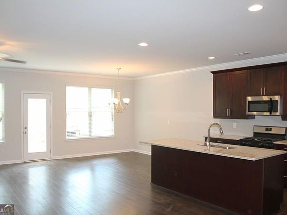 Beautiful, GATED townhouse in sought after Sharon Elem./Lambert High cluster!! Three story townhome with 4 spacious and bright bedrooms. Walk straight into your living space from the garage, no stairs! Beautiful open floor plan with hardwood floors on main. Spacious kitchen open to living room offers stainless steel appliances, luxurious granite countertops, soft close cabinets & walk-in pantry. Kitchen island is perfect for breakfast, but the townhouse also has space for a dining room set. The living room is spacious with a fireplace & automatic plantation shutters. Large primary bedroom with trey ceiling & a bright and modern bath. Two spacious secondary bedrooms on 2nd floor. On the 3rd floor you will find an OVERSIZED LOFT, full bath & an additional bedroom. Nice, private and quiet street. WILL NOT LAST LONG! Copyright Georgia MLS. All rights reserved. Information is deemed reliable but not guaranteed.