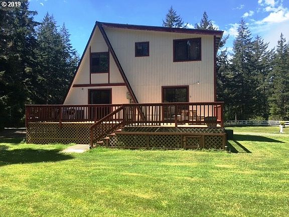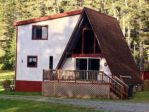 2 BANDON HOMES ON 5 MAGNIFICIENT PRIVATE ACRES! An expanded, just renovated, COMPLETELY FURNISHED A-Frame, run as a successful Vacation Rental,3 Bed,2 Bath w/ new Pellet stove; a 2005 Fleetwood graciously appointed, 2/3 bed, 2 Bath home w/ADA Bath, Great Rm.; a Shop/Barn; Mini fish pond, orchard on 5 flat,fenced usable, breath-taking acres. Horse property, Income property, generational family property! Warm yet convenient location.