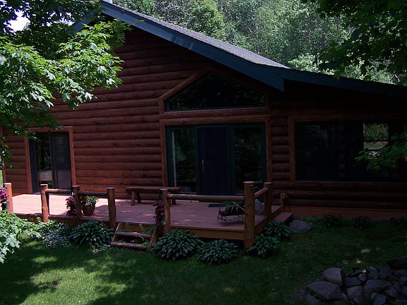 4 bedroom 1-1/2 bath 200+ sq ft on 2 acres with 260 ft of good shore line located on a secluded lake lot in a very quiet area. Bedroom #1 is 13 x 13 1/2, bedroom #2 is 12 x 12, bedroom #3 is 12x 10 and bedroom #4 is 12 x 15 with 1/2 bath (loft). There is plenty storage throughout the main floor and loft both in the house and garage. House has 3x10 half log siding with 6" solid foamed walls for super insulation. covered porch is 8x26 and front deck is 8x30 with a great view of the lake and sunsets. Wall insulation is R-28 and the roof is R-50. There is a 4 season porch that can double a an extra bedroom. Living room has a great lake view and a large stone fireplace that can double as an extra heat source if needed. Both house and garage have in-floor hot water heat for those cold winter days and warm feet. Interior of the house has log structure accents for that old log cabin look and feel. Sewer is private and up to code plus well has natural soft water which is great for drinking and bathing. There is a 2 1/2 car attached garage that is designed to be converted into living quarters if more living area is desired. There is a large loft in both the garage and main house with an extra large bedroom, a 1/2 bath and large storage area. Out buildings consist of a 8 x 12 boat house, 12 x 24 lean-to, 8 x 12 tool shed, 4 x 8 garden shed and a 8 x 12 bunk house that is insulated for winter use. House id situated on a great hunting and fishing lake plus property borders thousands of acres of public lands for excellent snowmobile and atv riding. This is a great location if you are looking for privacy and there are many lakes in this area that have superb fishing and hunting. There is only one other cabin on this lake on this lake for privacy. Lake is 30 ft deep and heavily spring fed for crystal clear water always. This is a very quiet and solitude location plus cabin is located at the end of the road for privacy.