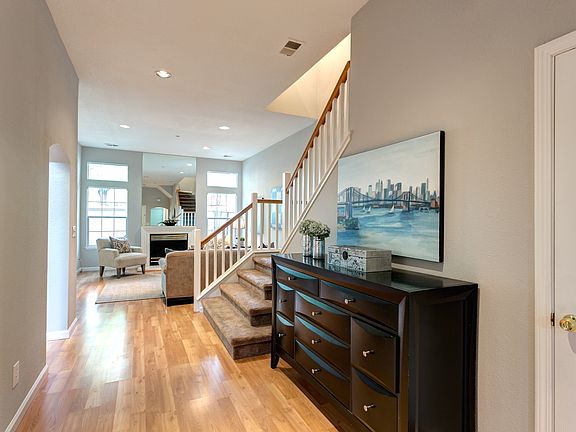 Beautiful spacious home featuring private walk way to front entry. Living room with gas fireplace, vaulted ceilings & laminate hardwood floors. Dining room which leads out to quaint private rear patio. Well-equipped kitchen w/ light tile counter tops, large windows for natural lighting in breakfast nook area, abundant wood cabinetry, dishwasher, gas range & microwave. All bedrooms are upstairs with spacious master suite with vaulted ceilings, fan, adjoining master bath with dual sink vanity, oval soaking tub with shower and mirrored wardrobe doors for walk in closet. Inside laundry room with cabinetry. 2 car garage attached. Community amenities include a pool and spa. Walking distance to some of the best schools in California and close to downtown and freeway access!