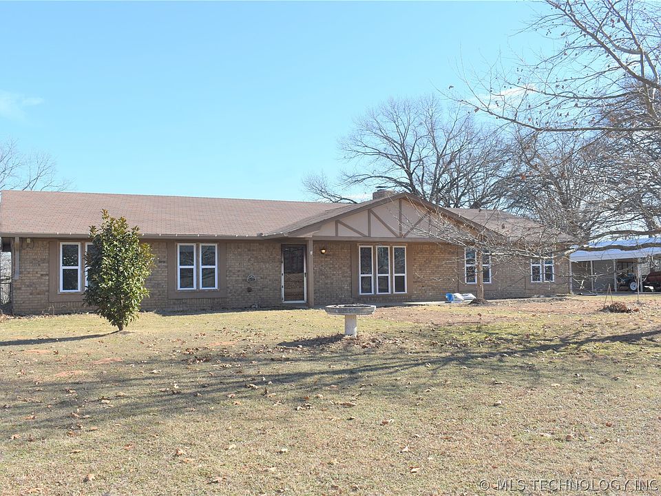 This spacious house located in an established neighborhood is ready for a new owner today. The home includes 3 bedrooms, two bathrooms, nice sized dining room that is open to the kitchen, living room with wood burning fireplace, nice laundry room, and a fabulous game-room or sitting room with a built-in bar. Newer carpet in the living room and two of the bedrooms. Large parking space that includes a two-car carport with storage area. Large, fenced backyard includes a second storage building with a cellar underneath. Firepit area for entertainment and a safe room is located on a slab in back porch area. New windows across the front of home. You will love the spacious, beautiful lot. So much opportunity with this very affordable home.