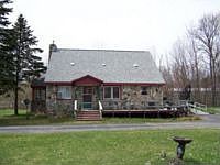 South Boardman - Cool stone 3 br, 1 bath home on 2+ acres with Boardman River frontage running through it. Pole barn partially heated & furnished, 2 car garage.