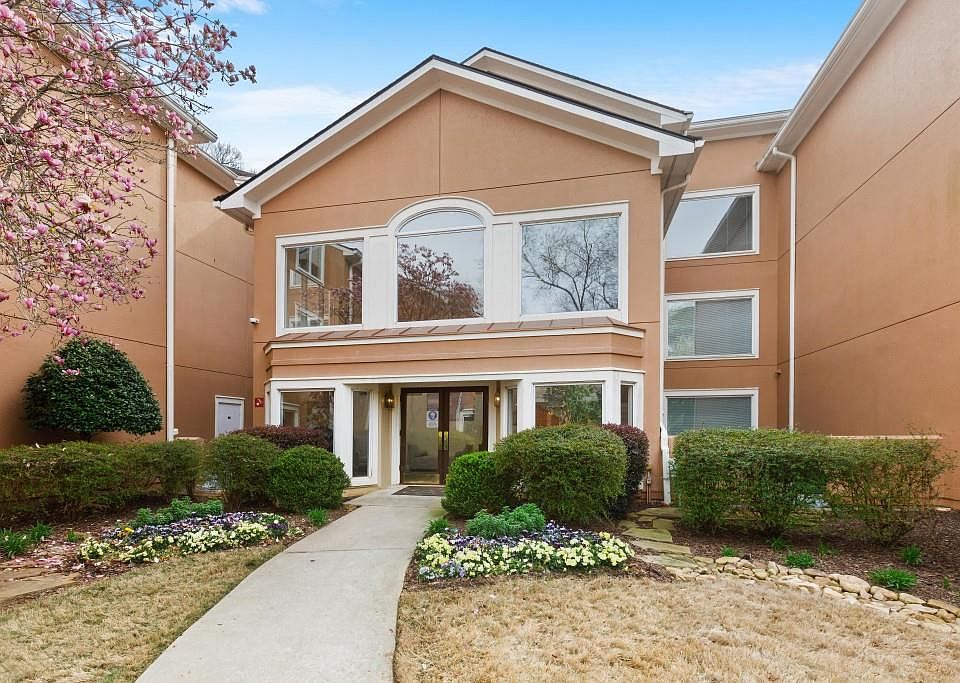 Beautiful One level Living at Its Best in the Sought After Gated Community of Brooke Ridge! Highly desirable and rare first floor light-filled 2 bedroom, 2 bath unit with den/office or possible third bedroom has a premier location within the community, just steps from your elevator access and boasts spectacular private views from the back porch of the pond and fountain, perfect for just relaxing or entertaining! This immaculate and move-in ready condo features hardwood floors, high ceilings, double paned transom windows, spacious rooms, recessed lighting, and neutral colors. Entry foyer opens to den/office with built-in bookcases, dining area, bright fireside living room with gorgeous views of the pond and nature, walk out to your porch to enjoy! Chef's kitchen with white pickled cabinetry, solid surface countertops and tile backsplash, stainless steel double ovens, separate gas cooktop, pantry, cozy breakfast area, Butler's pantry and full-sized laundry room with washer and dryer. Oversized owner's suite with his/her closets, attached private spa bath including double vanity, separate shower and jetted tub. Second bedroom or guest suite with private balcony access and hall bath, great roommate plan. 2 deeded parking spaces #39 and #40, with additional storage in garage area. Swim/Tennis community. Fabulous location in the heart of Dunwoody close to shopping, restaurants, Orchard Park, Dunwoody Village, Perimeter Business District, and interstates. A Real Gem!