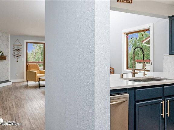 The remodel of this light-&-bright top-floor end-unit condo w/vaulted ceilings & east/south/west sun exposure is 100% stellar: new floors/paint, kitchen backsplash & quartz/wood counters, bathrooms, fixtures... the list goes on. The condo also lives like a treehouse in the summer (the greenery!) & has awesome mountain views in the winter. Close to UMED, JBER & trails, this home is A+ fantastic.