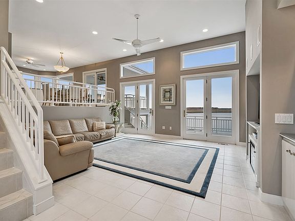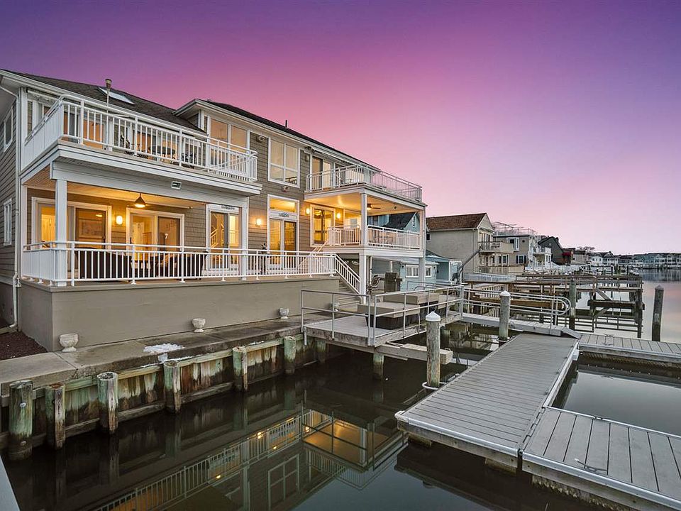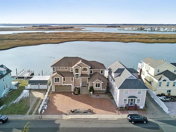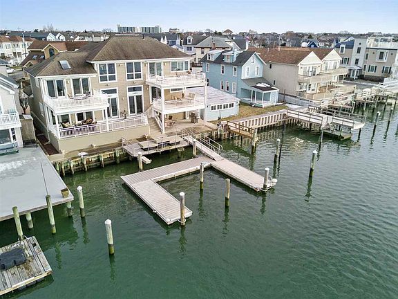 If you have been dreaming of waking up to~breathtaking panoramic sunset views of the magnificent Sunset Lake and Ephraim Island in Wildwood Crest, then look no further than this 3 Story Custom Build. Situated ideally in an Exclusive Bayfront Location with Multiple Decks, Four Large Slips, Concrete Bulkhead, Fillet Table and Sink, this is a true Boaters Paradise. Riparian rights included. Crafted ideally for its prime location, the four spacious balcony decks spanning off the kitchen, family room, and two master suites, coupled with enormous panoramic windows, make it easy to enjoy the views from every angle. Pride of ownership is evident upon arrival, as the stunning custom Semi Circular Paver Driveway offers plenty of parking space, allowing you to use your large 2 Car Garage for vehicles, kayaks, boating equipment, or whatever you may need. As you enter the home, you will be instantly drawn to the sunlight and gorgeous views that pour in through the French Doors and Custom Windows and light up the bright, open living area. Remarkable tiled floors, recessed lighting, brand new neutral paint, stylized built in shelves, and gas fireplace showcase the luxury of this living space. Ascend into the beautiful, spacious Eat In Kitchen featuring tile flooring, gleaming white cabinetry, a huge center island, and large eating area making it the ideal spot for entertaining family and friends. Overlooking the bay through Panoramic Windows and French Doors opening onto a spacious balcony deck, this incredible luxury kitchen will be the envy of friends and family all summer long. With endless outdoor space for grilling, relaxing, and soaking in the sun, you will not believe this private paradise is home. Luxury living spans onto the third floor, featuring a gorgeous living space with vaulted ceilings, floor to ceiling windows, wet/dry bar, and of course, a magnificent Master Suite. Your luxurious paradise awaits, with panoramic waterfront views, private balcony, vaulted ceilings, huge walk in closets, and a spectacular en suite Master Bath, that will feel like a private spa with elegant double vanity sinks and spacious stand in shower. Elegance carries throughout the remaining bedrooms, one featuring its own private deck and one with stunning vaulted ceilings with skylights. Your guests will feel like they are staying in a resort each time they visit, and you will have plenty of space to maintain privacy. Come find your paradise in this exquisite dream home!