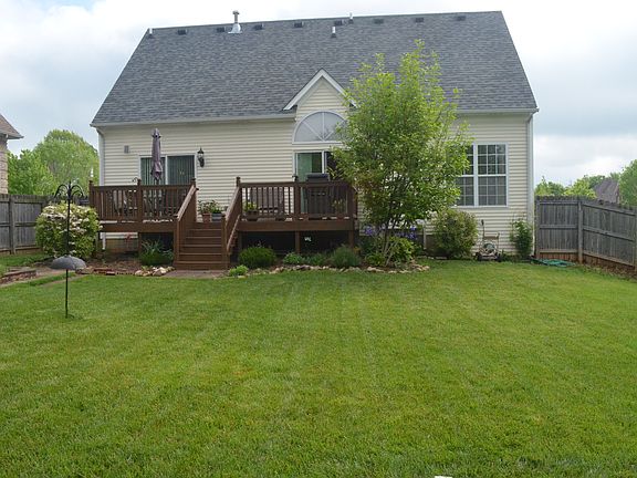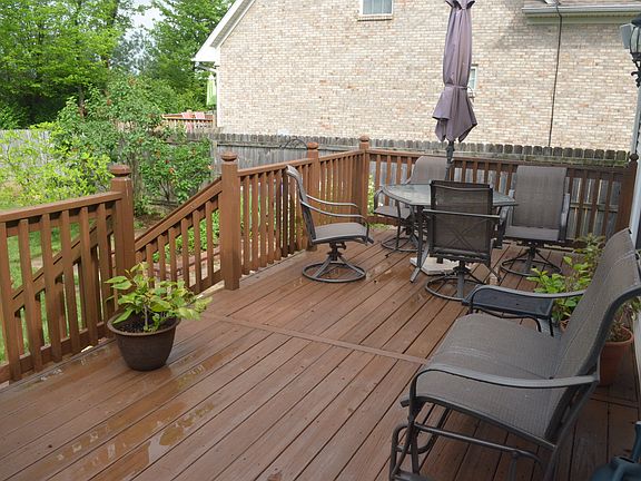 A one and a half story open concept home. Central great room has a vaulted ceiling, a gas fireplace, and Brazilian cherry hardwood floors. First floor master bedroom, just off the great room. Two bedrooms and full bath overlooking great room. Finished basement with new berber carpet and wired for surround sound. Updated kitchen includes quartz countertops and travertine backsplash, along with new appliances. Kitchen and eating area are open to great room. Updated master bathroom with granite countertops and waterfall faucets; jetted tub and rainfall shower head included. Master bedroom has separate sliding glass doors to deck. House has multiple rooms wired for surround sound (great room, master bedroom, basement), and deck has outdoor speakers. Backyard has privacy