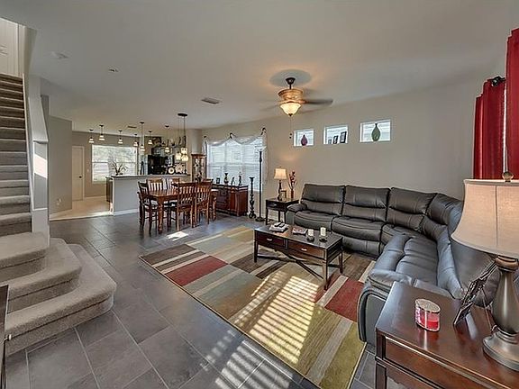 - Interior Features: Ceiling Fans(s), High Ceiling(s), Open Floorplan, Walk-In Closet(s), Solid Wood Cabinets, Thermostat, Kitchen/Family Room Combo, Living Room/Dining Room Combo, Window Treatments