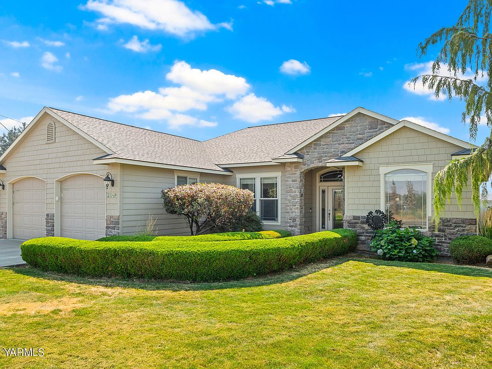 Experience Scenic Dr living with this custom-built, one-level home! At the heart of the home is a spacious great room featuring a gas fireplace and elegant coved ceilings, perfect for both relaxation and entertaining. The gourmet eat-in kitchen overlooks the great room and offers a breakfast bar, sleek granite countertops, and ample space for dining. A dedicated office space, located just off the entry, provides the ideal environment for remote work or study.The primary suite, located opposite the other two bedrooms for maximum privacy, includes a walk-in closet, double vanity, soaking tub, and separate shower. Keep your home pristine with the built-in central vacuum system.The functional garage includes pull-down storage, providing ample space for your belongings. Step outside and enjoy the wonderful southerly views. The private covered sitting area, complete with a gas fireplace, is perfect for year-round enjoyment. Additional amenities include a small shop with power, ideal for hobbies or projects, and a storage shed for extra convenience.