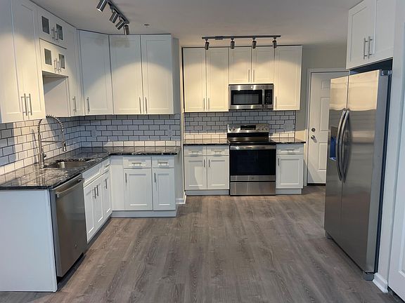 This newly renovated first floor apartment features in unit laundry, hardwood floors throughout, central AC, ceiling fans, large closets, ceramic tile in both bathrooms, and a private entrance. The custom kitchen is open to the living room. It has granite counters with lots of character, garbage disposal, track lighting, and stainless steel appliances including side by side fridge with water and icemaker in the door, dishwasher, built in microwave, and high BTU glass top stove. The bedrooms are each about the same size. One of the bathrooms has two vanities and a full size tub. The other has a large vanity and shower with glass surround. Landlord pays water, sewage, and trash. Tenant pays electric. There is high efficiency electric heat and central AC.