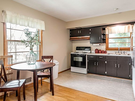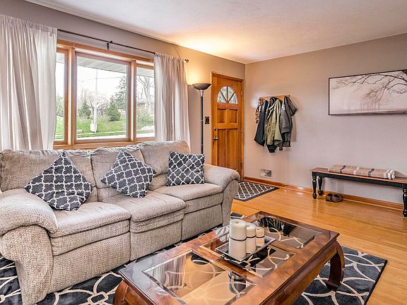 Welcome to this gorgeous Bedford Stone Ranch with a finished walkout basement. As soon as you walk in you're greeted by beautiful oak hardwood floors in the spacious and well-lit living room. The eat-in kitchen has tile floors. The updated bathroom has tile floors, an updated vanity, and a tiled shower. In the partially finished basement you will find a wet bar, dining area, and living room with built-in shelving. The basement also has an unfinished section which contains a laundry room and a game room.