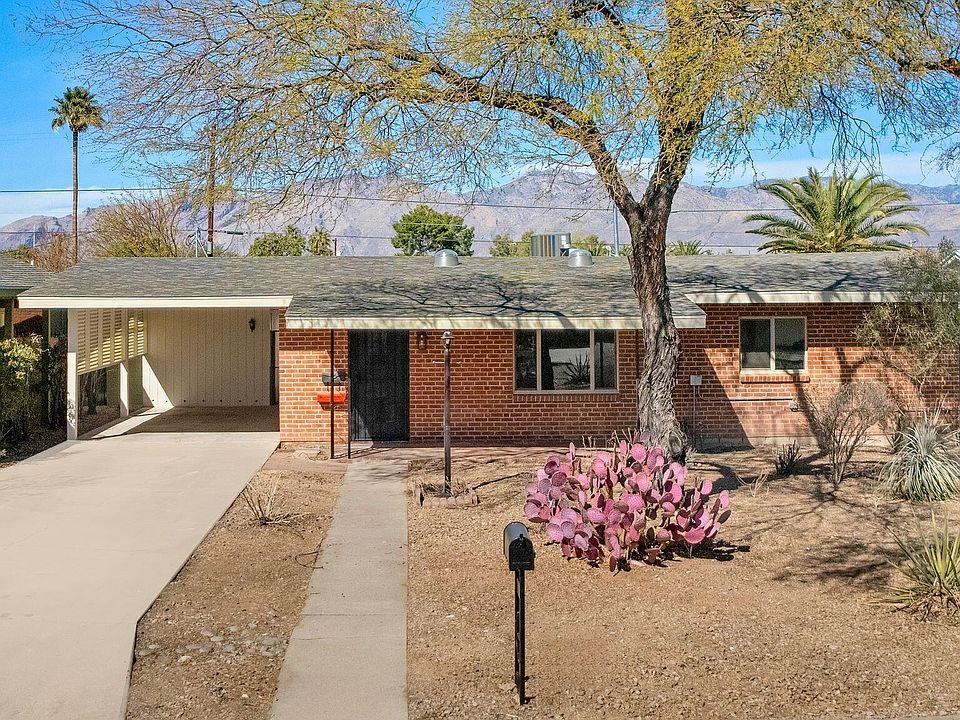 Darling, renovated, move-in-ready 3bd/1ba red brick home in perfect midtown location in a great neighborhood with beautiful views of the Catalinas - this is the one you've been waiting for! Brand NEW ROOF, WINDOWS, DOORS + TRIM, TILE FLOORS, FIXTURES, PAINT (inside and out!) + updated & relocated ELECTRICAL SERVICE. 4 yr new HVAC, updated kitchen and bath & no HOA. Enjoy unobstructed mountain views from expansive north-facing backyard w/mature vegetation, deep attached shaded patio & separate patio with pergola - the perfect space for al fresco dining, outdoor play, dogs, gardening & more. Large storage room steps from back door with workshop, cedar closet, storage & laundry. Close to shopping, medical (including two hospitals), schools (including U of A), parks, bus & more! Owner/Agent.