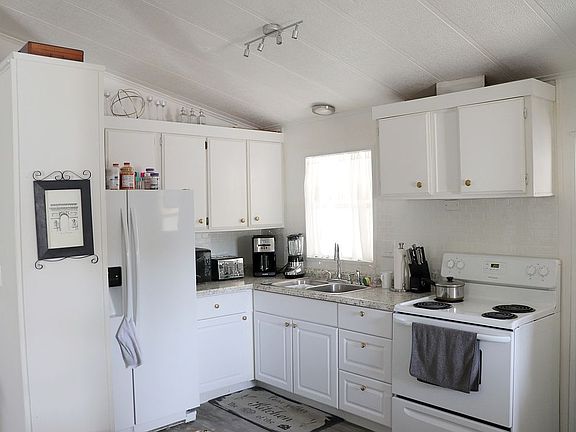 Come see this well maintained, beautifully remodeled 2/2 home near Lakewood Ranch! Cathedral ceilings in open concept living room, kitchen and dining room. New neutral paint colors throughout with all new flooring, sinks, faucets, fireplace (with or without heat). Willing to negotiate with furniture, or turn-key with everything you need to enjoy this amazing community. Home on private end of cul-de-sac. Community offers heated pool, fenced dog park with "over 40" age requirements and lots of activities with great neighbors! Flexible on occupancy! Lot rent of $855 includes property taxes, water, cable, trash, sewer, lawn maintenance, everything except electric!
