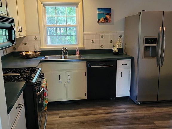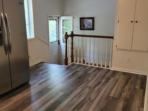 CHECK OUT THIS HOME NOW. New paint and new flooring. This is such a perfectly located home. Mature trees and a large deck overlooking the creek. Large kitchen with gas stove Primary bath has nice size shower. Windows replaced in2009. Luxury plank flooring thru out first floor. Walkout basement features wood burning fireplace, additional room for hobbies or storage. Oversized 2-Car garage has additional electrical outlets and engine hoist w/steel beam. Creek at rear of yard.