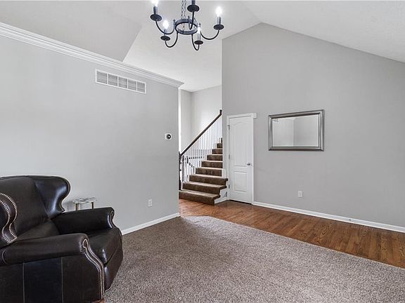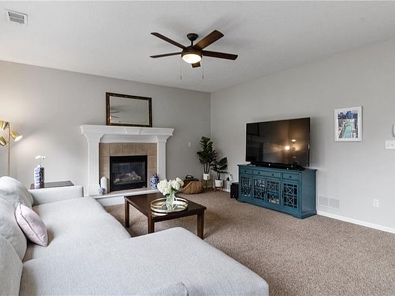 Step inside to discover high ceilings, fresh paint and a bright, airy and updated kitchen with a walk-in pantry. This home boasts two living spaces including a cozy family room featuring a fireplace creating the perfect setting for relaxing evenings or the perfect spot enjoy the Chiefs game. Additionally, a half bath on the same level as the family room adds convenience for both residents and guests.