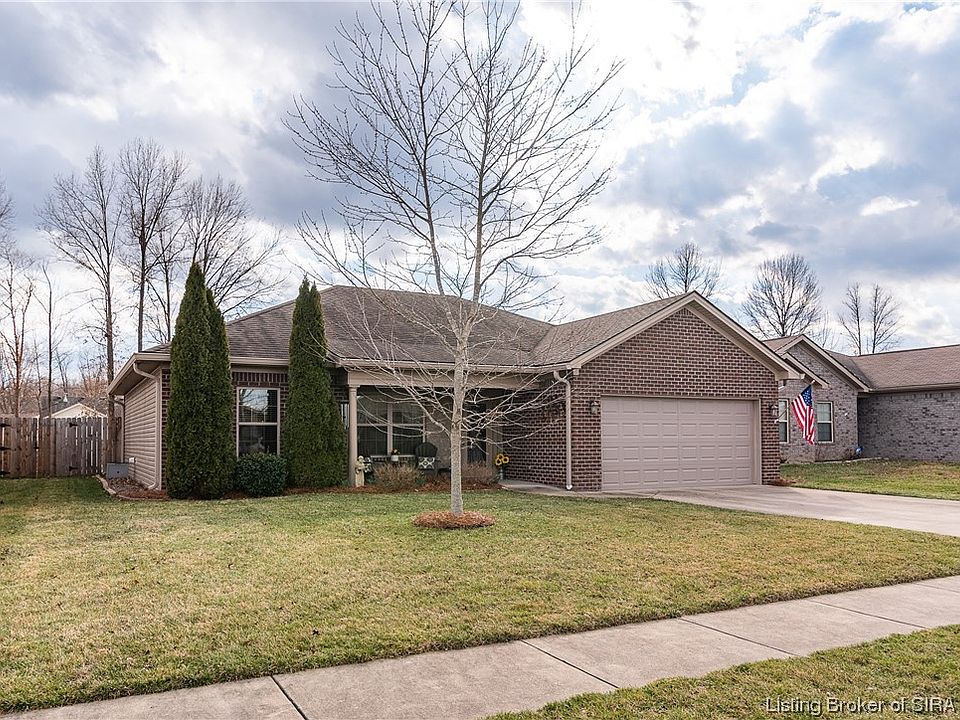 You'll feel right at home in this beautifully appointed "Accord plan" by Schuler Homes. This charming home is nestled in Harmony Woods subdivision located just off I-65. Brick and stone accents the beautiful covered front porch. Stunning 10' ceilings in great room with ceiling fan, beautiful cabinetry in eat-in kitchen, ENERGY smart rated appliances. The back yard is completely privacy fenced, features a "Miller Barn" with tin roof, mini-green house, fertile gardening area, with firepit. Ceramic tile in foyer, kitchen, laundry & baths. Three split bedrooms with two full baths. Main bedroom suite has large walk-in closet with an abundance of shelving. Two car garage with plenty of off street parking.