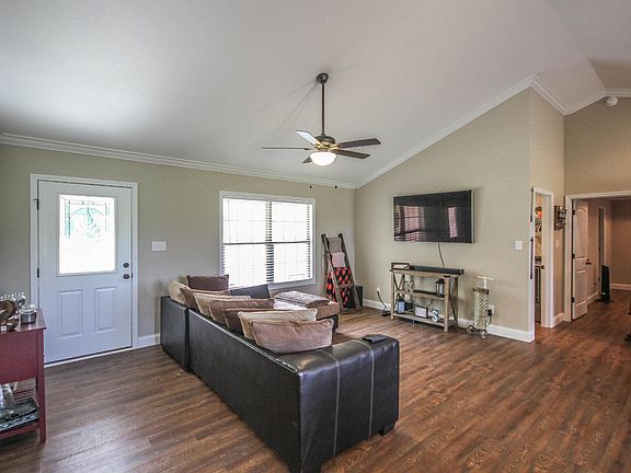 WELCOME HOME TO THIS BASICALLY BRAND NEW HOME BUILT IN 2018! This open concept floor plan features split bedrooms, cathedral and trey ceilings, extensive moldings throughout, upgraded island in kitchen, and large laundry/mud room off of garage. You'll love the upgraded wide plank laminate flooring throughout all main living spaces and tile in baths and wet areas. Kitchen features stainless appliances (REFRIGERATOR REMAINS) and ample counter space with island. Large master suite boasts trey ceilings, walk-in closet, double vanities in bath, and walk-in shower. Plenty of linen/pantry storage as well! Outside, enjoy your front covered porch or back grilling deck on your level .77 ACRE lot in a beautiful country setting. Call today for your personal tour! 100% financing is available!
