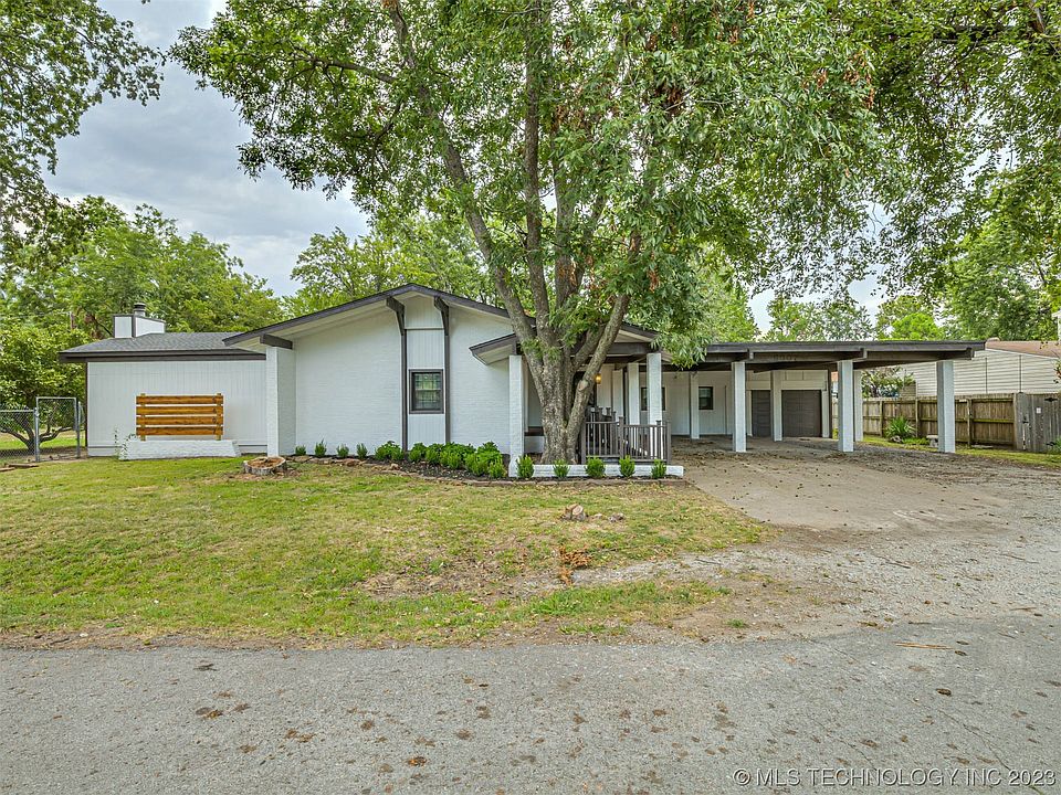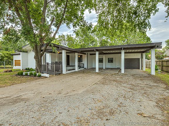 COMPLETELY remodeled home, one you do not want to miss. Four bedroom, two bath that no portion was left unimproved. Situated on a preferred corner lot on nearly an acre in the heart of Tulsa within minutes of brookside, highway access and neighborhood adjoins public park with playground. You will find everything in this show stopping home is upgraded, refreshed and curated to fit your family. An entertainers dream with functional spaces, open concept with soaring ceilings, modern tile and flooring, gorgeous designer countertops and fixtures throughout. Enjoy evenings in the massive living room with vaulted ceilings and roaring fireplace. Tons of natural lighting with large windows makes the perfect environment for unwinding and relaxation. Multiple functional living spaces makes hosting a breeze, with access to every area of the house from the thoughtfully designed kitchen. Enjoy your park like setting in the heart of Tulsa with multiple exterior access points to the new custom designed deck, truly a dream for social gatherings or personal enjoyment. Incredible MASSIVE work shop for any hobbyists or professional to utilize for their business. Ample parking and security, covered driveway for inclement weather, fully fenced. EVERYTHING is new - list including but not limited to: roof, reframed in garage, exterior/interior paint, flooring, subfloor, bathrooms, kitchen and mantle, sliding door and side door, back deck, electrical wiring, outlets and light switches, lighting and fan fixtures, bathtubs, toilets, vanities, mirrors, hand rails on front stairs, some windows, front garage door motor, rear panels on large shop door, new appliances!