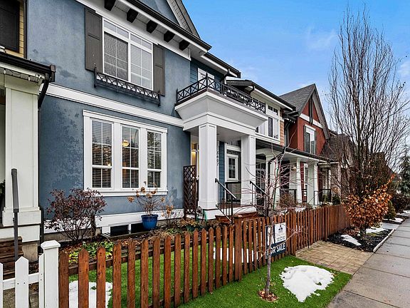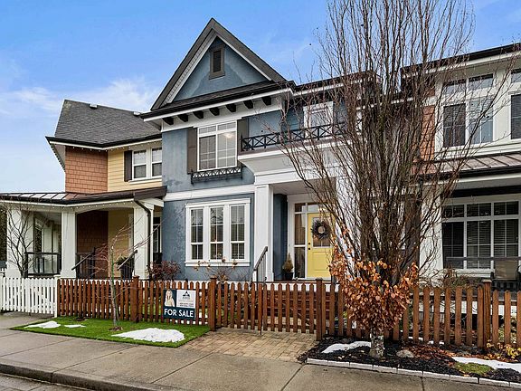 Gorgeous NON-STRATA rowhouse located in one of Chilliwack's highly sought after neighbourhoods amongst old growth trees and picturesque homes. This 4 bedroom, 4 bathroom is just over 2000 sq. ft. and has a detached single car garage. Starting on the main, the open floor plan allows a seamless transition from the spacious great room with gas fireplace to the kitchen with dark shaker cabinets, Quartz countertops, and stainless steel appliances. Upstairs, there are two good sized bedrooms, full bathroom, and the spacious master with a full en-suite and private patio. The full basement level boasts a recreation room, bathroom, and 4th bedroom. The backyard is fully fenced. The award winning Garrison Crossing is within walking distance to Cheam Centre, waterpark/playground, shopping, and more!