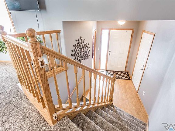 Incredibly well-maintained 4 bed, 2 bath home located on a quiet street in west Sioux Falls. The angled foyer welcomes you upon entrance. The main level has soaring vaulted ceilings that carry from the living room to the dining and kitchen areas. The large bay window allows for ample natural light. The kitchen and dining areas offer plenty of cabinet space, island and slider to the large deck overlooking the fenced backyard and good-sized shed. The remaining main level is host to the master bedroom with pass-thru access to the full bath and walk-in closet and the second bedroom with a walk-in closet as well! The lower-level features a wide open family room with a gorgeous FP. In addition, you'll find two more beds each with walk-in closets and a full bath. Enjoy updated flooring and paint throughout and new roof in 2010. With fantastic convenience to the Lake Lorraine shopping center, Hy-Vee, interstate travel and entertainment, this home is one you won't want to miss.