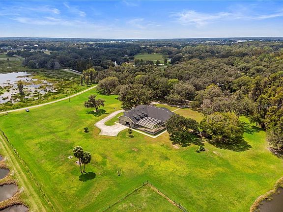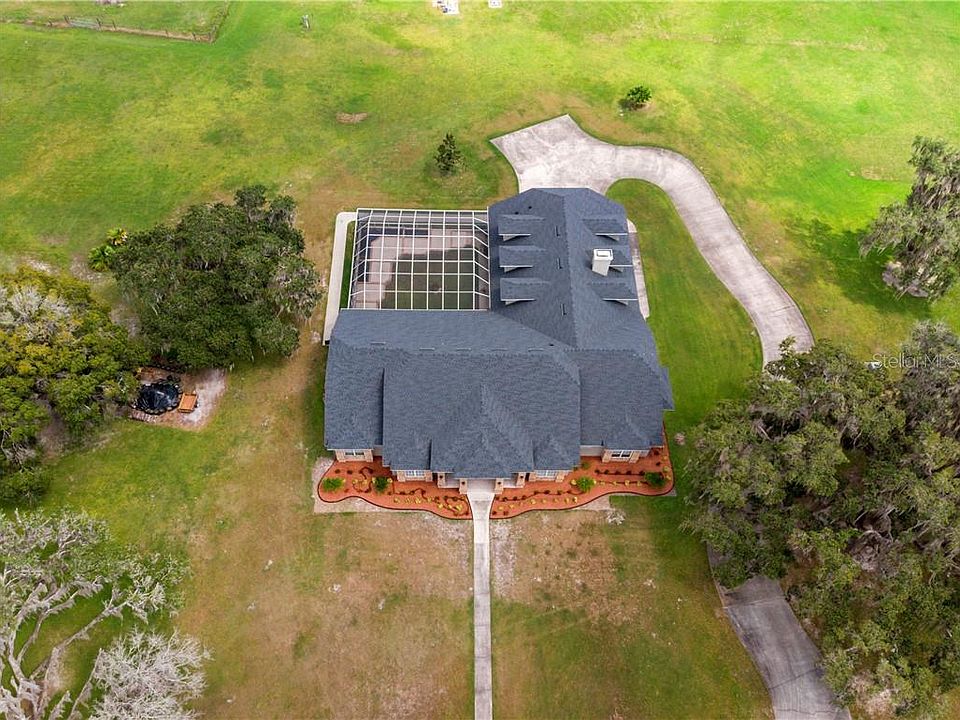Custom designed home built with care and quality. Spacious 6 Bedroom, 5 Bath Home located on 4.66 acres in a country setting. Home is 9114sf with 5759sf of heated living area and has all the bells and whistles . A few of the features include New roof in 2018, custom crown, base & wood columns,8 ft doors, 12-&14 ft ceilings, a Chef's dream kitchen that includes a Sub-Zero commercial refrigerator, Island, double convection ovens, 2 New Viking D/W's, 2 sinks, 48" cook top & vented range hood, cabinetry that includes pull outs , custom lighting throughout , intercom/surround sound in every room, 400 amp service, 2 80 gallon fast recovery water heaters, 4 zoned AC units, Brick wood burning fireplace, outdoor kitchen,5 full baths, gallery lighting, Master shower includes full body shower, Kohler jetted garden tub and Jado Gold/Nickel fixtures, more storage areas than you ever use, water treatment system, oversized 3 car garage and a huge screened lanai that is plumbed and wired waiting for a new pool. There are many more extras included, call us today for your complete list home features.