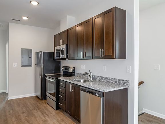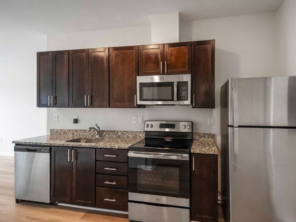 Stainless-steel kitchen appliancesIn-unit washer and dryerGranite countertops