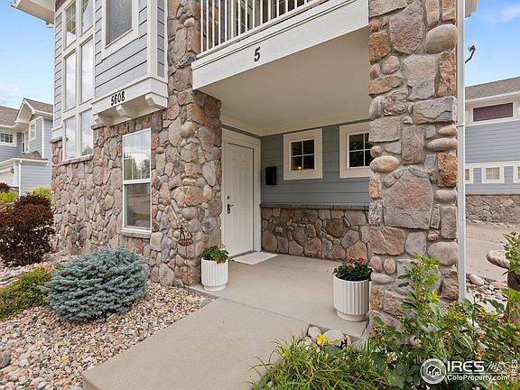 Welcome to 5608 Condor Drive #5, an elegant, modern 2-bd, 2-ba condo perched high above the traffic noise, hustle & bustle of the city, in the heart of Fort Collins. Spanning 1,601 square feet, this residence offers a harmonious blend of luxury, nature access, mountain views and comfort.As you step inside, you're greeted by a breathtaking grand foyer with soaring two-story ceilings, a dramatic Rejuvenation Hardware chandelier, and expansive windows that flood the space with natural light. The newly installed solid wood floors add a touch of sophistication throughout the home.The thoughtfully designed floor plan includes large living spaces perfect for hosting. Enjoy mountain views from the ample dining room or relax in the expansive living room, which features a cozy gas fireplace and access to a private balcony. The dream kitchen has been newly renovated, boasting high-end custom cabinets, ample quartz countertops, Rejuvenation Hardware lighting and hardware, and stainless steel appliances. It's a culinary haven for the discerning chef.The large primary bedroom suite is a retreat unto itself, featuring a walk-in closet with a custom closet system and a luxurious bathroom outfitted with new cabinets, Rejuvenation Hardware cabinet hardware, new light fixtures, soaking tub, shower, and water closet. The second bedroom is equally inviting, with an adjacent guest bathroom that includes new cabinets, quartz counters, updated light fixtures, and a designer mirror. Additional highlights include a laundry room with ample cabinetry and a storage room. The oversized 2-car garage offers an extra 10 feet of length, perfect for a workshop or additional storage.This high-end condo offers serene living with westerly mountain views and is located within half a block of Fossil Creek Park. Located on the interior of the condo complex, away from traffic noise and with no Lemay direct adjacency. Don't miss the opportunity to make this exquisite residence your new home.