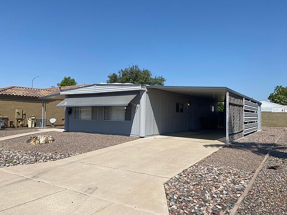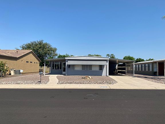 Awesome 2 bed 1 bath home with AZ room located in the sought after Apache Wells Mobile Park 5 neighborhood! This home boasts an open kitchen, dining area with built in cabinets, living room, comfortable AZ room, no maintenance yard, 2 full bedrooms with walk in closets and a full bathroom with walk in shower. This home has it all! Located one block from the clubhouse! Don't miss out! 55+ community. Pets ok with owner approval and $35/pet/month pet rent. App fee is $50 per adult and is non refundable. Each adult must be 55 or older and over must fill out separate applications and provide copies of ID and Proof of income. If pets are approved, a monthly pet fee of $35 per pet plus tax will be added to the rent. $50 admin fee monthly. $200 non refundable admin fee. No other fees!
