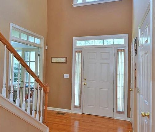 - Interior: 2-Story Foyer, Double Vnty Other, Entrance Foyer, Trey Ceilings, Wall/Wall Carpet, 9 ft + Ceil Main, Disp Attic Stairs, His & Her Closets